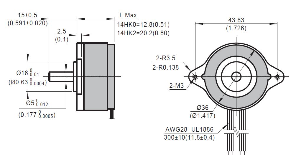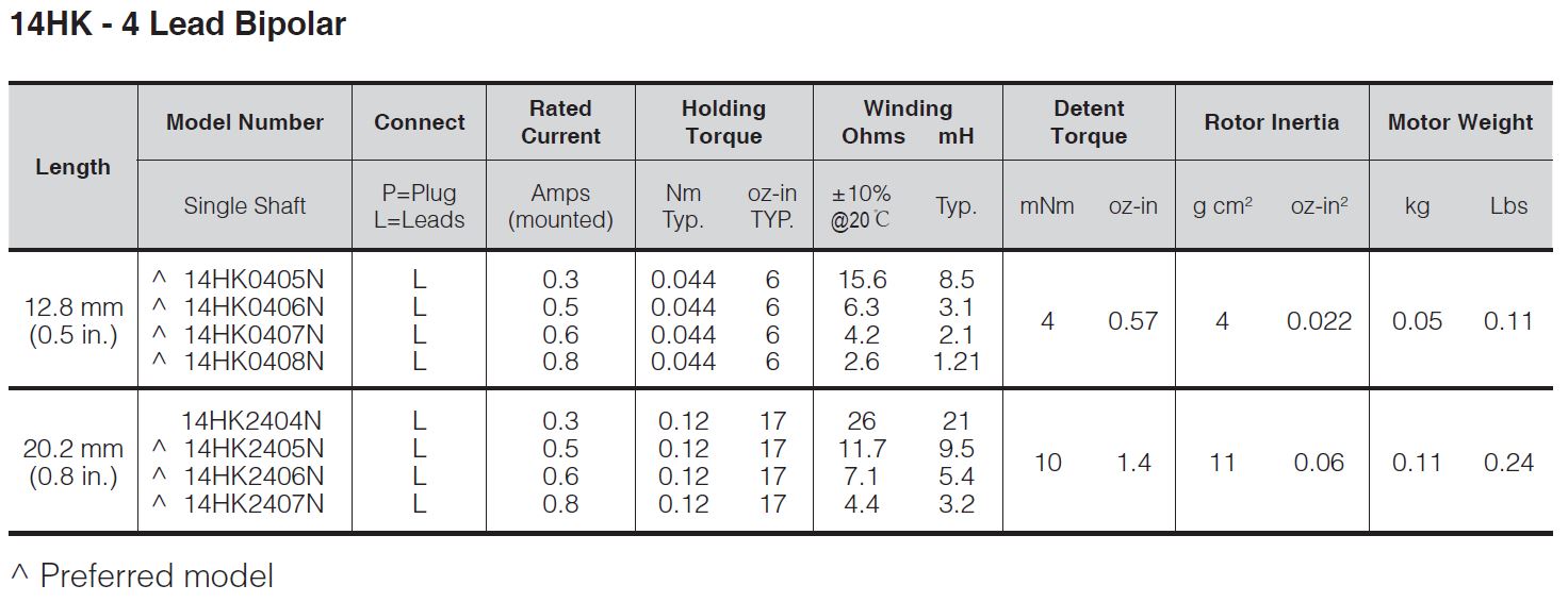 35mm/Size14 Bipolar Hybrid 0,9° Stepper (0,044-0,12 Nm)