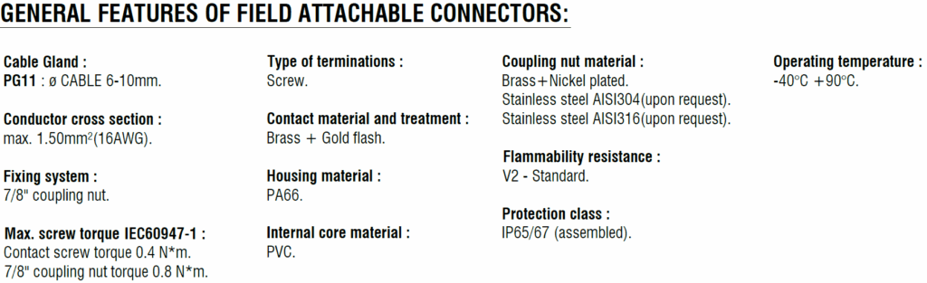 7/8 ” Field attachable connectors