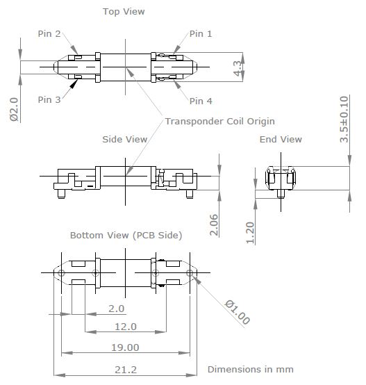 The 20mm Transponder Coil is also available with capacitance connected across its SMD pads, for use as a resonator assembly.