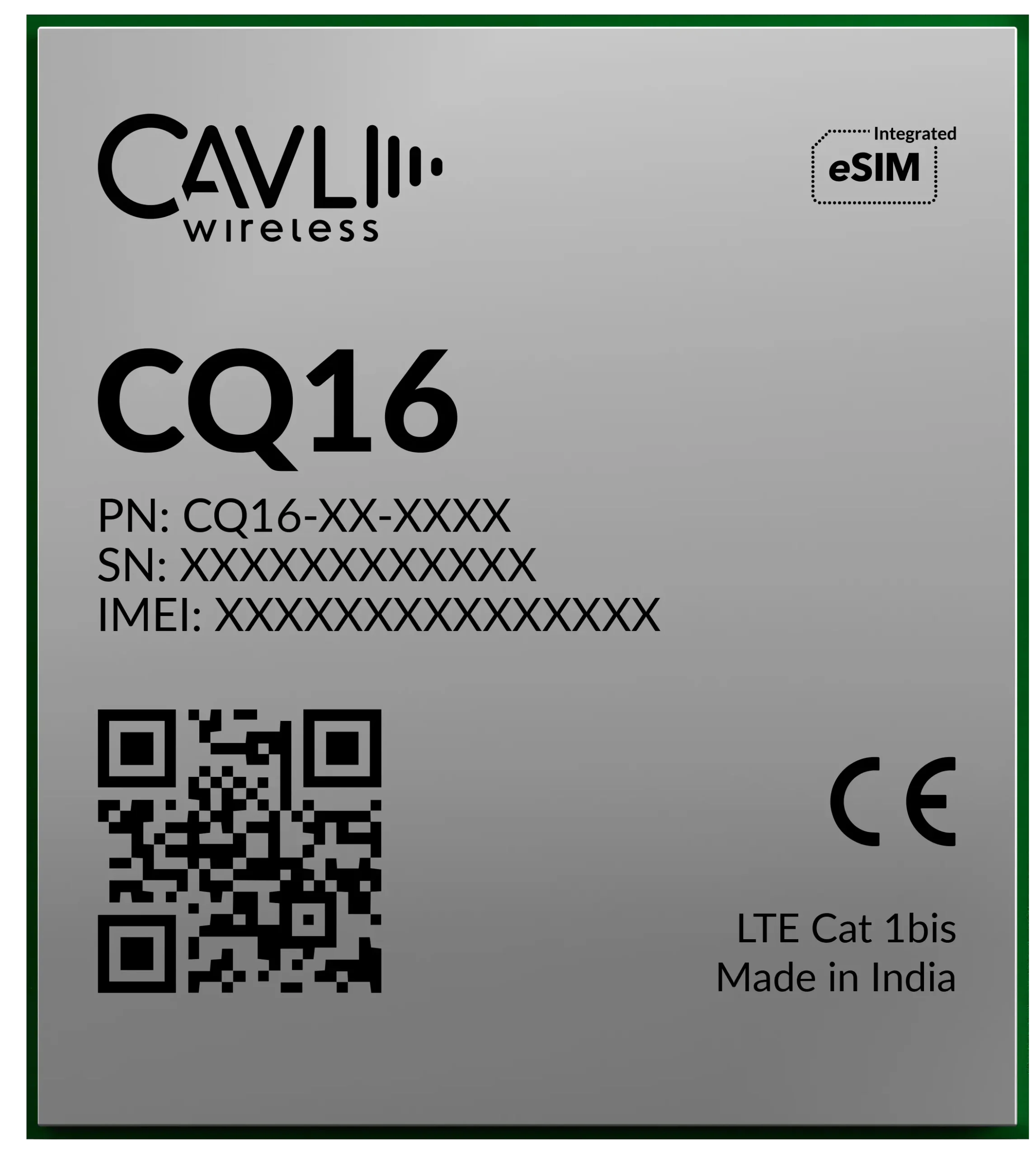 CQ16 is a series of new LTE Cat1.bis modules with optional integrated eSIM optimized for IoT applications with low cost and low power consumption. It is compliant to 3GPP Rel 14 Cat.1bis standards and ideal for customers interested in switching from legacy 2G and 3G solutions to LTE. CQ16 comes with unique features that enables easy product development and faster go to market for product makers. Its enhanced power saving modes, including sleep features and low power modes making it ideal for applications such as asset tracking, POS and remote monitoring and energy metering. The module can be easily onboarded to Cavli Hubble, our proprietary cloud based modem management platform to enables hassle free global deployments.