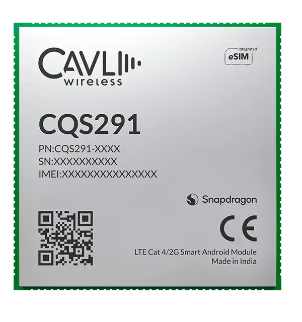 The CQS291 is a part of Cavli’s C-Series module family, featuring LTE Cat 4 IoT modules that support data rates of up to 150 Mbit/s downlink and 50 Mbit/s uplink, with 2G fallback. These Android smart modules are equipped with a Cortex A53 quad-core CPU and a built-in Adreno™ 702 GPU, delivering superior graphics, exceptional image quality, and powerful compute performance. Available in global variants with various memory configurations, the series supports multi-constellation GNSS, including GPS, BDS, GLONASS, Galileo, QZSS, and SBAS. Additional features such as USB 3.1 Type-C/Micro USB, Wi-Fi, Bluetooth, and FM. CQS291 offers an optional integrated eSIM, providing global connectivity through the Cavli Hubble IoT platform for seamless deployments across various applications.