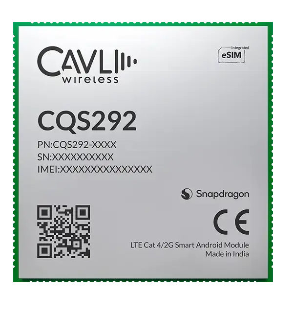 The CQS292 is a part of Cavli’s C-Series module family, featuring LTE Cat 4 IoT modules that support data rates of up to 150 Mbit/s downlink and 50 Mbit/s uplink, with 2G fallback. These Android smart modules are equipped with a Cortex A53 quad-core CPU and a built-in Adreno™ 702 GPU, delivering superior graphics, exceptional image quality, and powerful compute performance. Available in global variants with various memory configurations, the series supports multi-constellation GNSS, including GPS, BDS, GLONASS, Galileo, QZSS, and SBAS. Additional features such as USB 3.1 Type-C/Micro USB, Wi-Fi, Bluetooth, and FM. CQS292 offers an optional integrated eSIM, providing global connectivity through the Cavli Hubble IoT platform for seamless deployments across various applications.