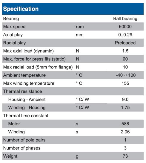 16mm slotless BLDC Motor 14/23W (9,4-10,2 mNm)