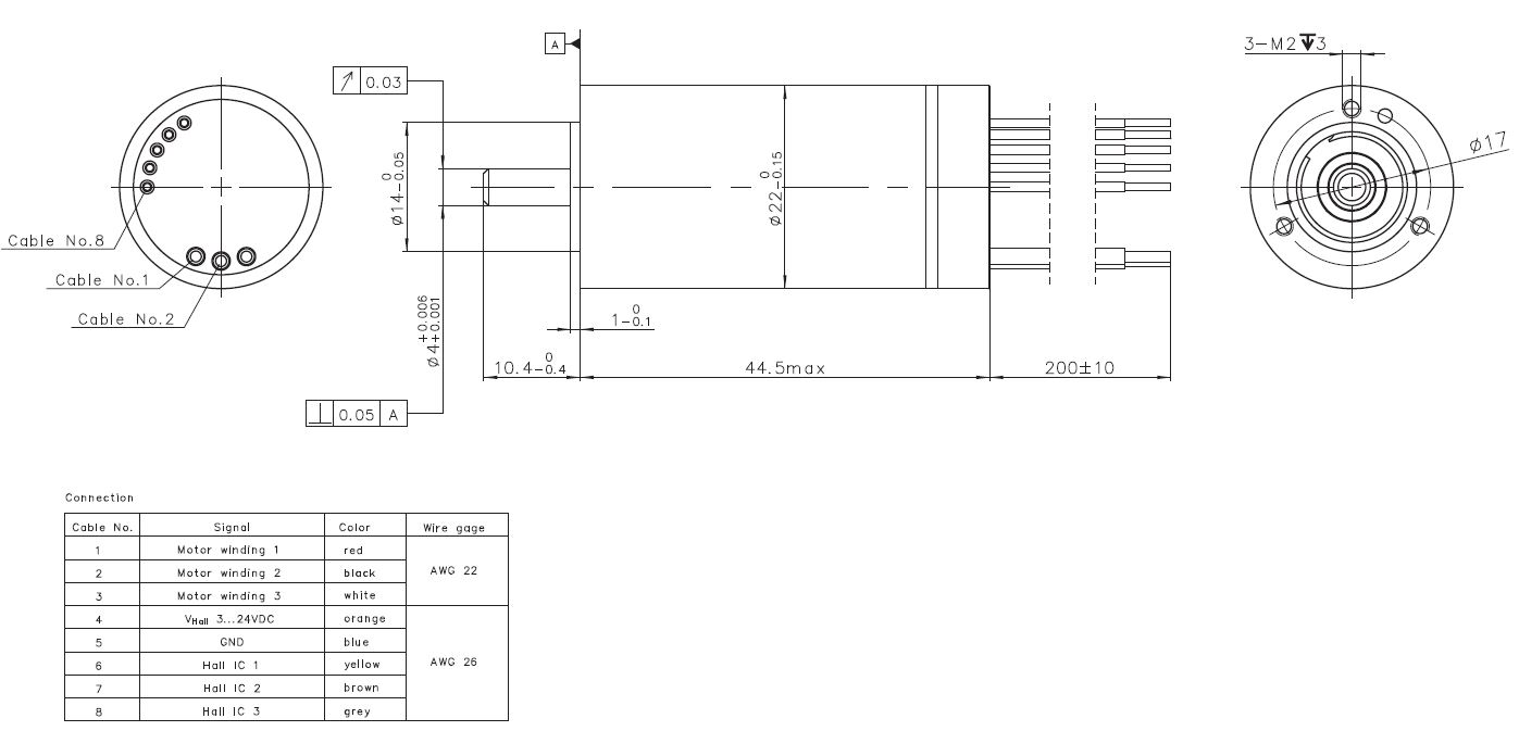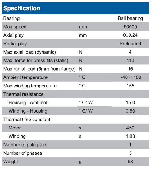 16mm slotless BLDC Motor 14/23W (9,4-10,2 mNm)