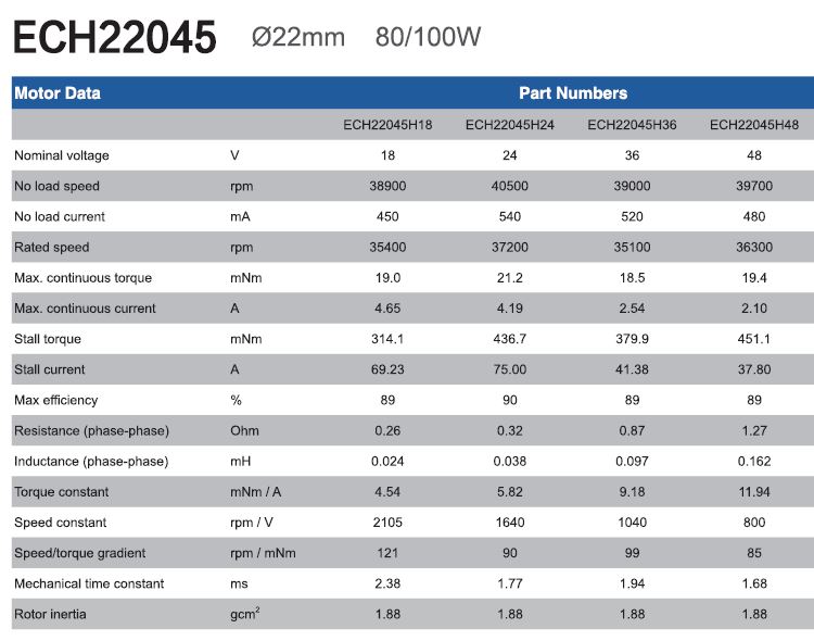 22mm slotless BLDC Motor 80/100W high speed (18,5-21,2 mNm)