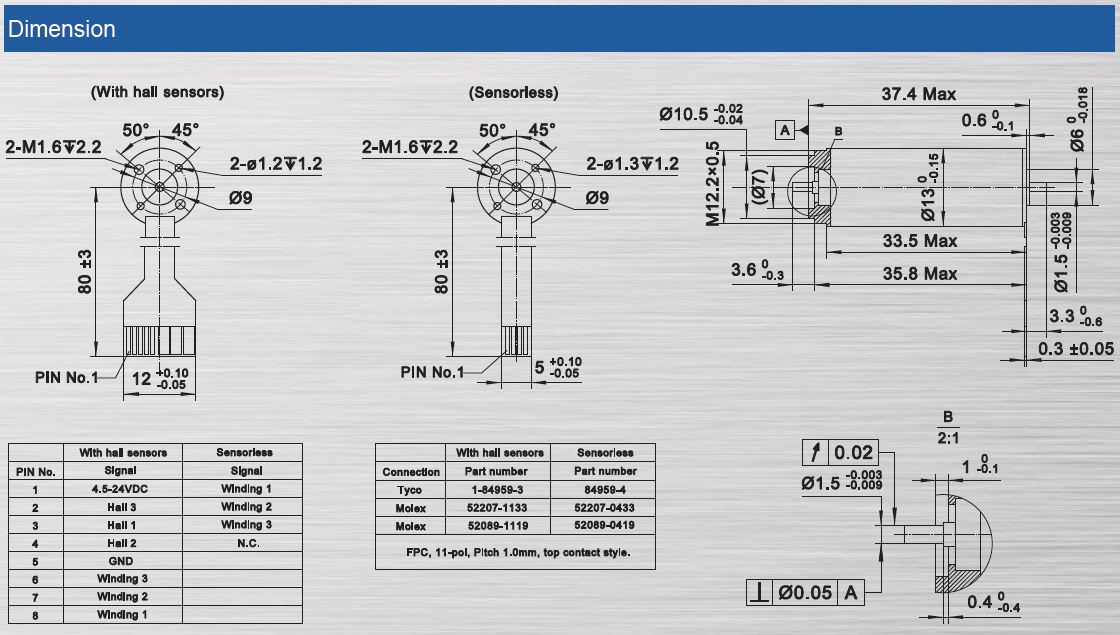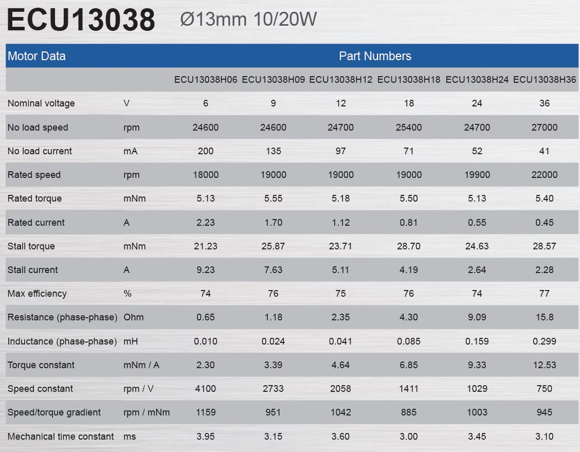 13mm slotless BLDC Motor 10/20W (5,13-5,55 mNm)