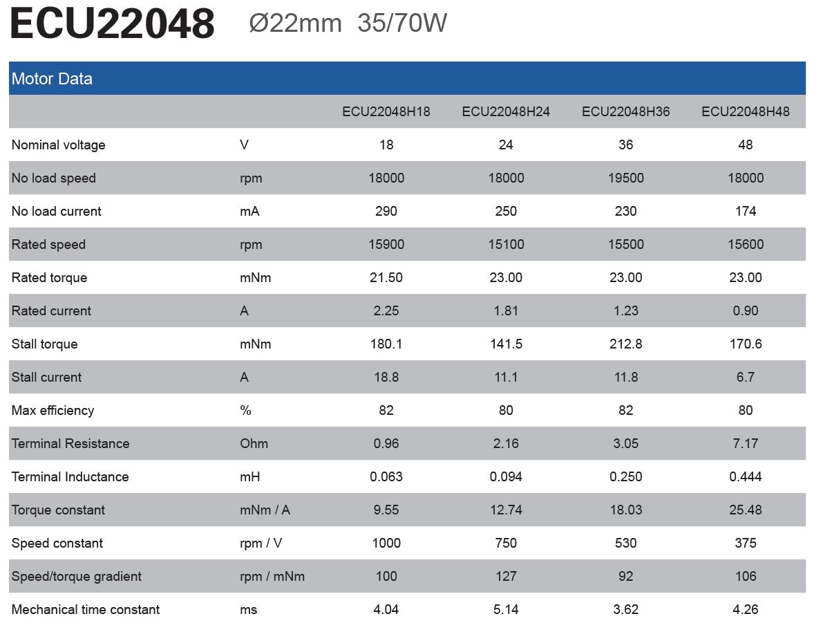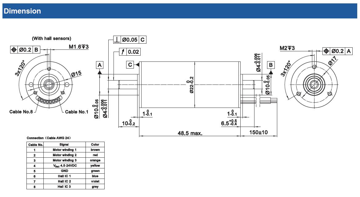 22mm slotless BLDC Motor 35/70W (21,5-23,0 mNm)