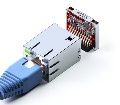 The first member of our MiniMo family, the EM500 is designed to be used in tandem with a standard RJ45 magnetics jack. The combined footprint of the EM500 and a typical jack is only 28.5×18.5mm (1.12×0.63″).