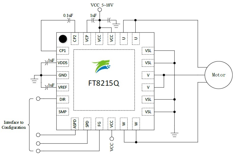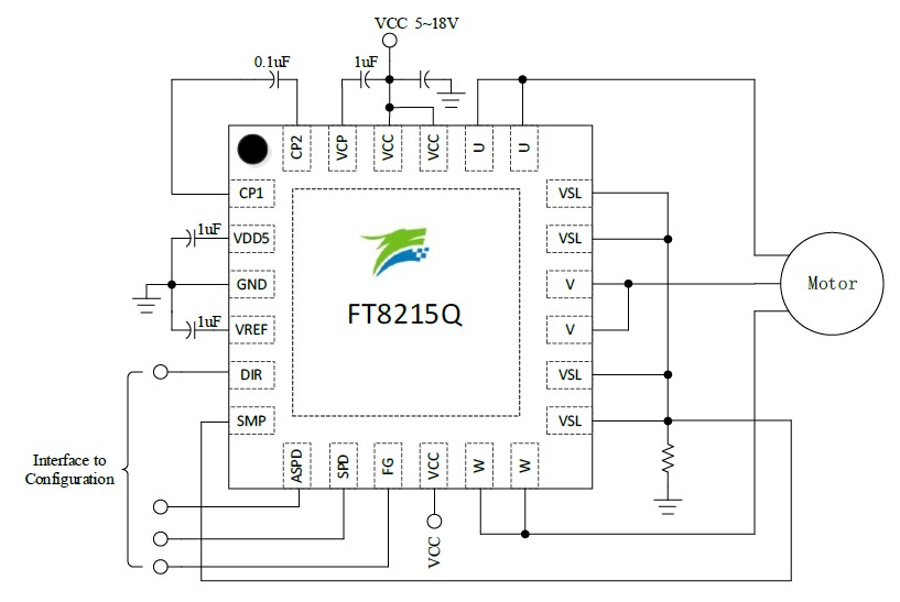 FT8215 is an IC with built-in three-phase MOSFET designed for BLDC motor drive system.