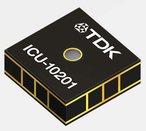 The ICU-10201 is a high-performance ultrasonic Time-of-Flight sensor that is ideal for measuring the range of objects between 10cm and 1.2m, and offers a customizable field-of-view of up to 180º. It has a sample rate of 250 samples per second at 0.3 meters, and 130 samples per second at 1 meter. It comes in a 3.5 × 3.5 × 1.26 mm LGA package, and includes an integrated DSP for signal processing.