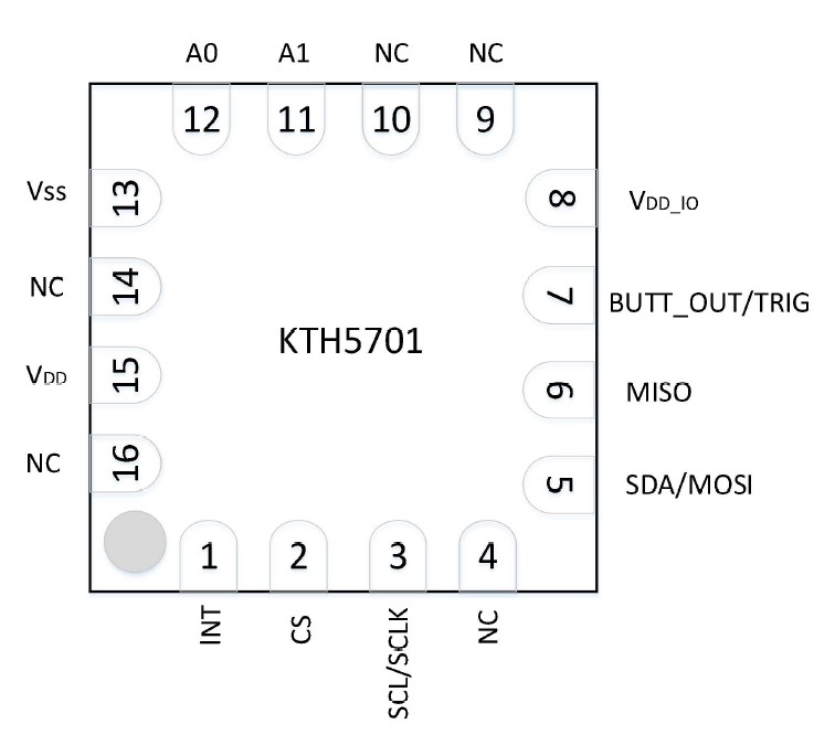 The KTH5701 supports continuous sensing mode, wake-up sleep mode, and single measurement mode, making it suitable for various application scenarios. The BUTT_OUT pin is used to detect the button function between the magnet and the chip, and can also be configured as a trigger mode to trigger a single measurement.