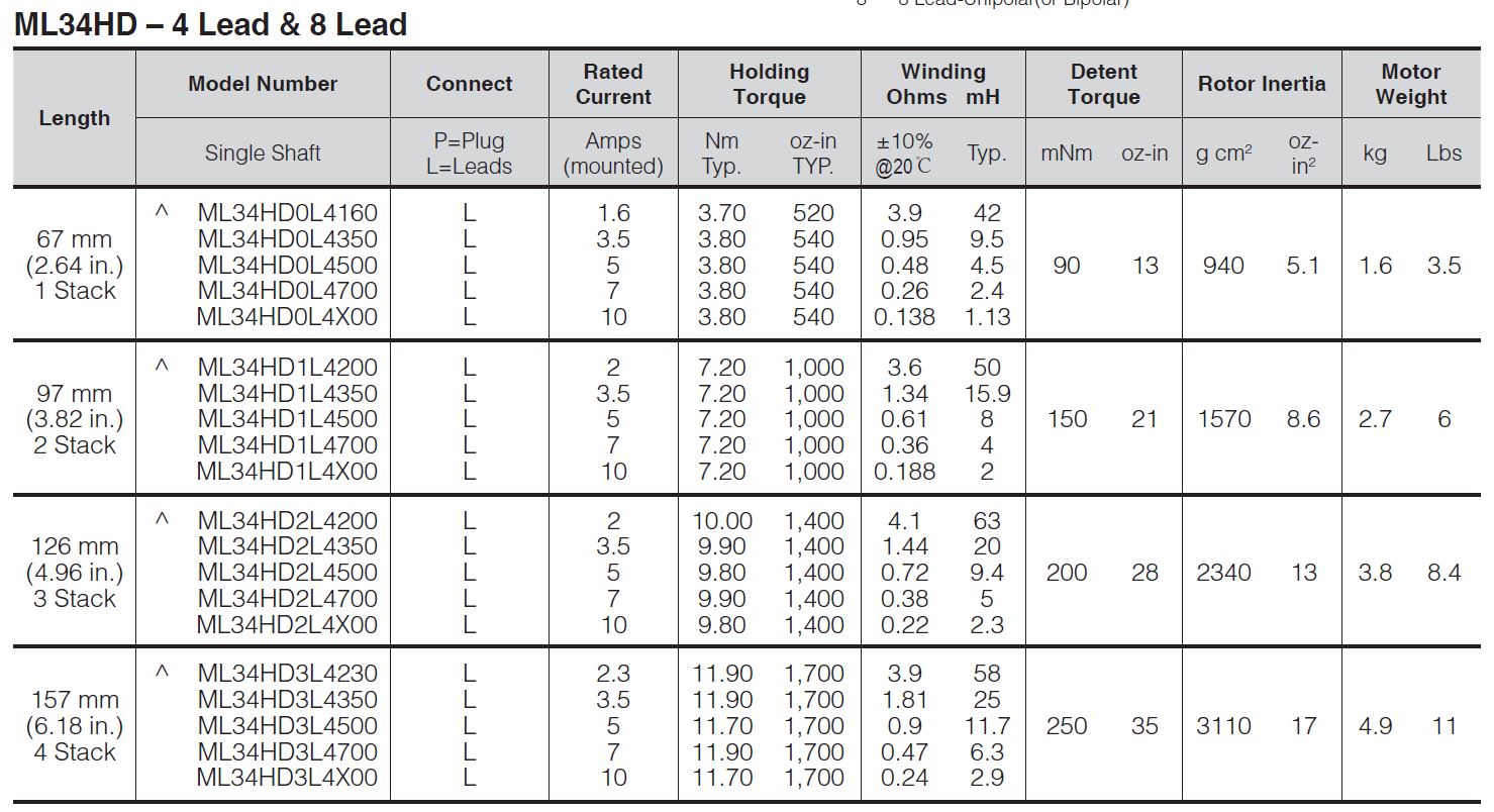 86mm/NEMA34 Bipolar Hybrid 1,8° Stepper (3,7-11,9 Nm)