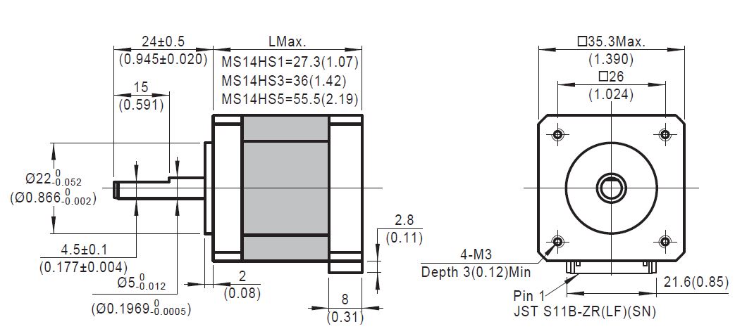 35mm/NEMA14 Bipolar Hybrid 1,8° Stepper (0,1-0,4 Nm)
