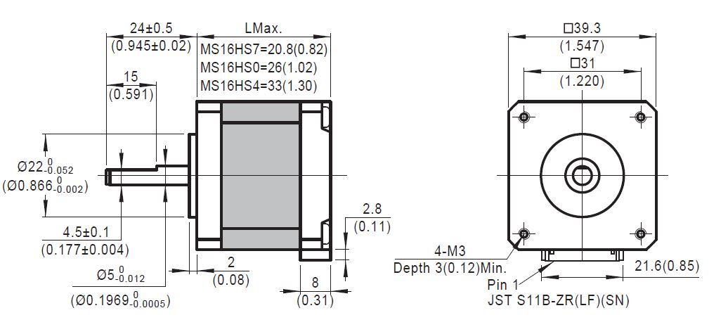 39mm/NEMA16 Bipolar Hybrid 1,8° Stepper (0,27-1,5 Nm)