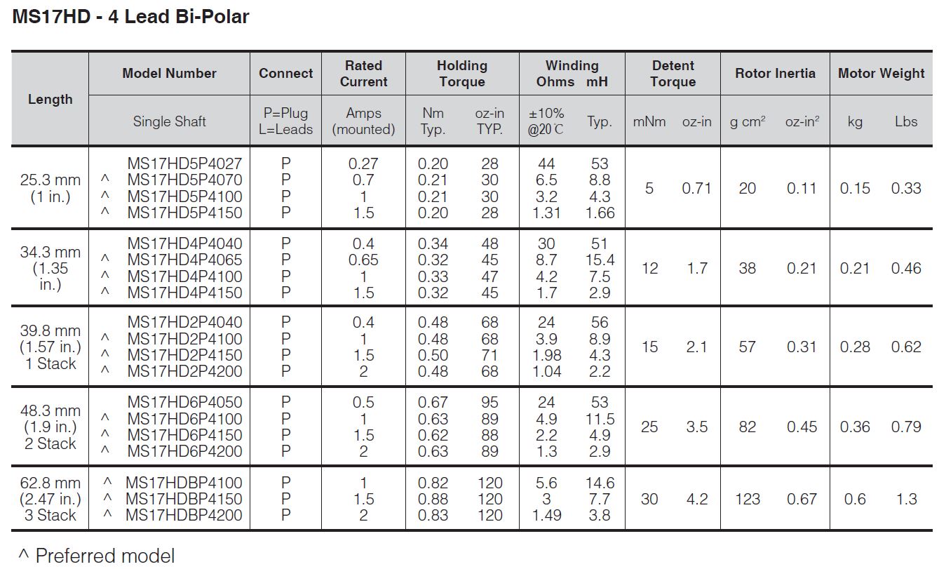 MS17HD6P4100 (MEV preferred type: 0.63 Nm, 1.0A, 48.3 mm)