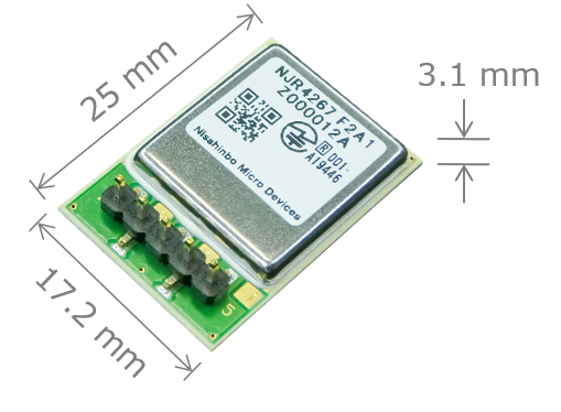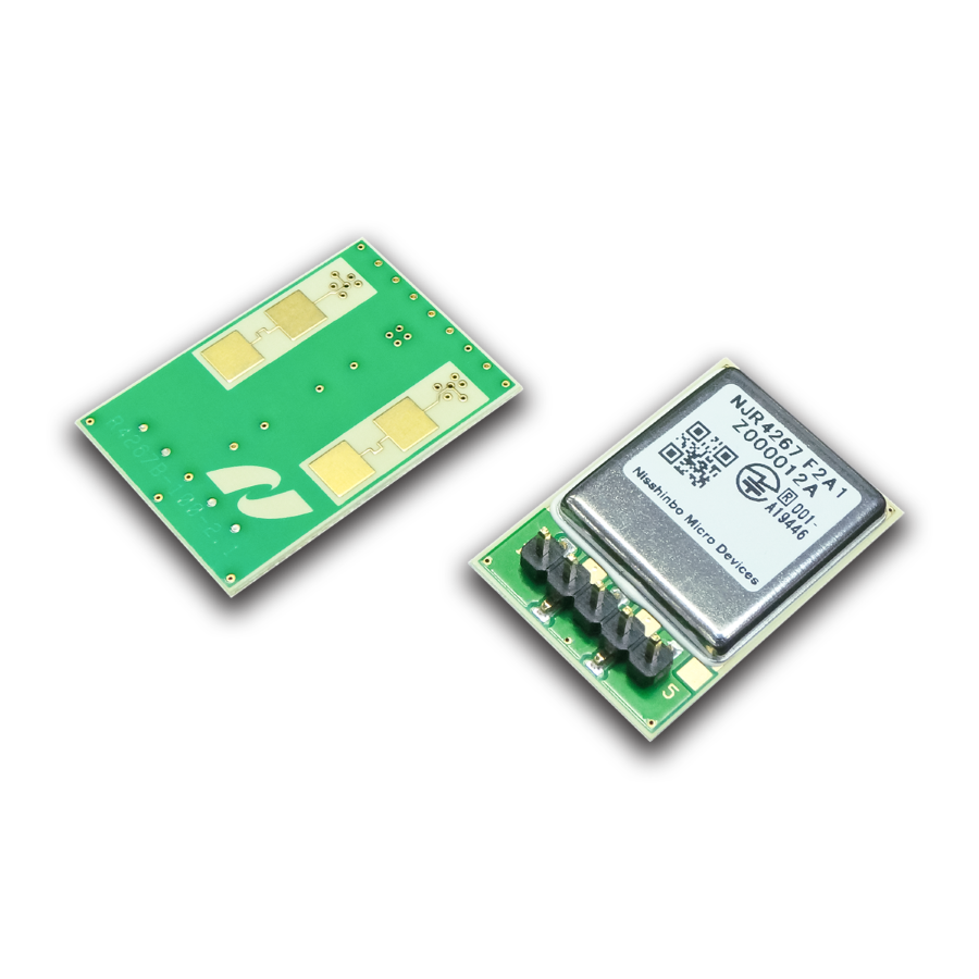 The NJR4267 is a microwave 24GHz Doppler sensor module in a small and low profile package measuring 17.2 x 25 x 3.1 mm.