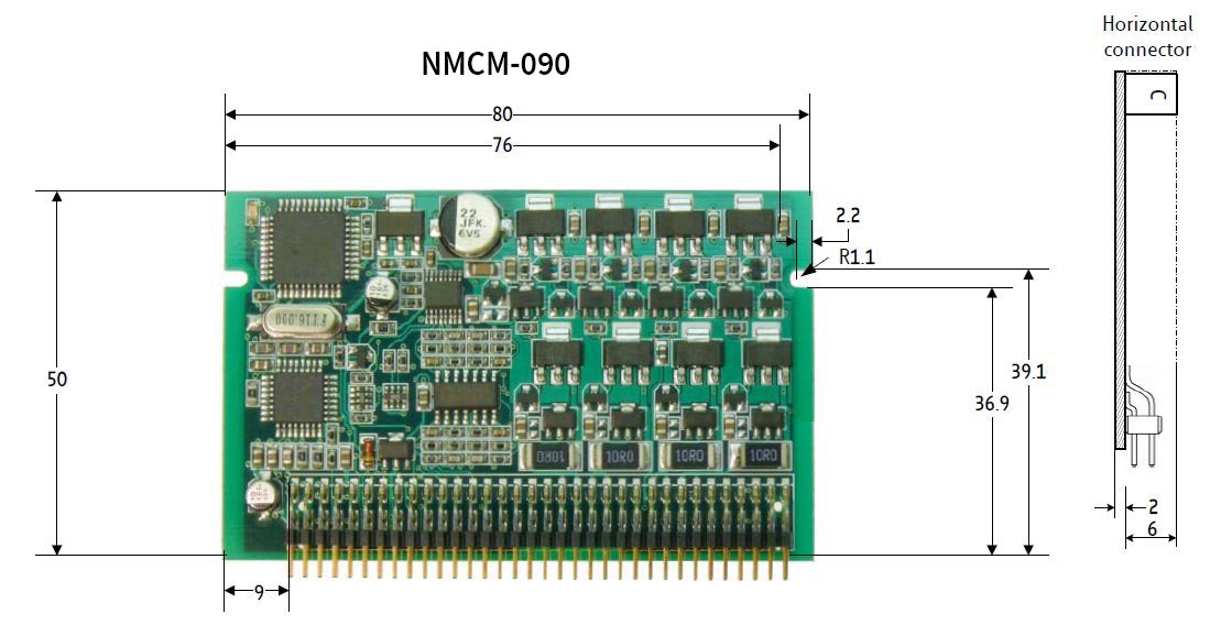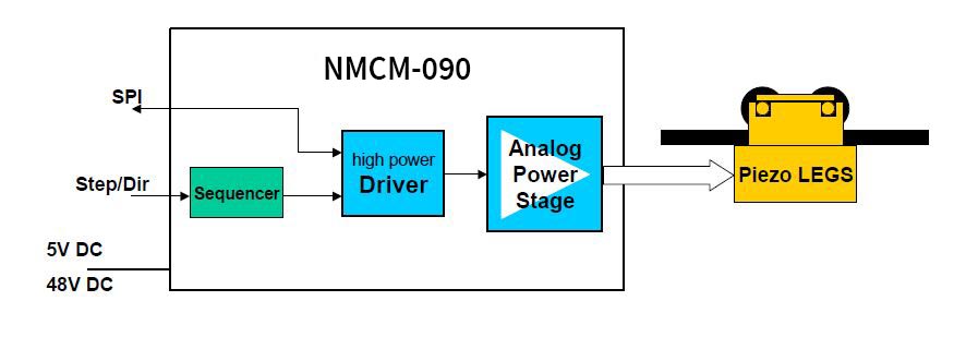 The NMCM-090 is a compact piezo motor driver module for high precision and highly dynamic piezo axis. It is specially designed for four phase piezo motors, like the PIEZO MOTOR „Piezo Legs®“. It can be combined with any step/direction controller. The board can be connected to a baseboard or customized electronics with a pin connector. Applications are optical and analytical instruments. Its high microstep resolution leads to a linear motor resolution of about 4nm per microstep.