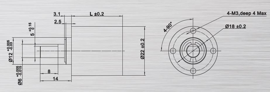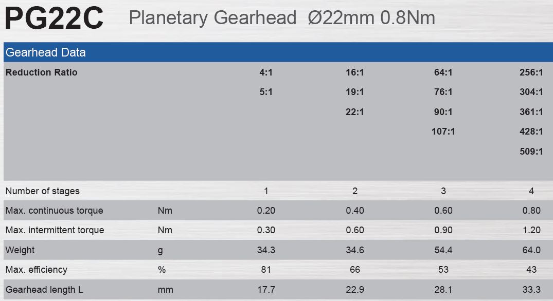 22mm Planetary Gearhead (0,2-0,8 Nm) for ECU22063