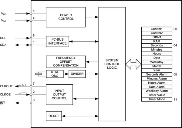 RV-8263-C8 This ultra small RTC Module has been specially designed for miniature and cost sensitive high volume applications. The tiny C8 (2.0 x 1.2x 0.7 mm) SMD ceramic package combines the 32.768 kHz crystal unit with the CMOS-based oscillator and real-time-clock circuitry. The clock function provides seconds, minutes and hours. The calendar function tracks date, month, year and century with automatic leap year compensation. Programmable CLKOUT frequencies, alarm settings and timer function increase flexibility.