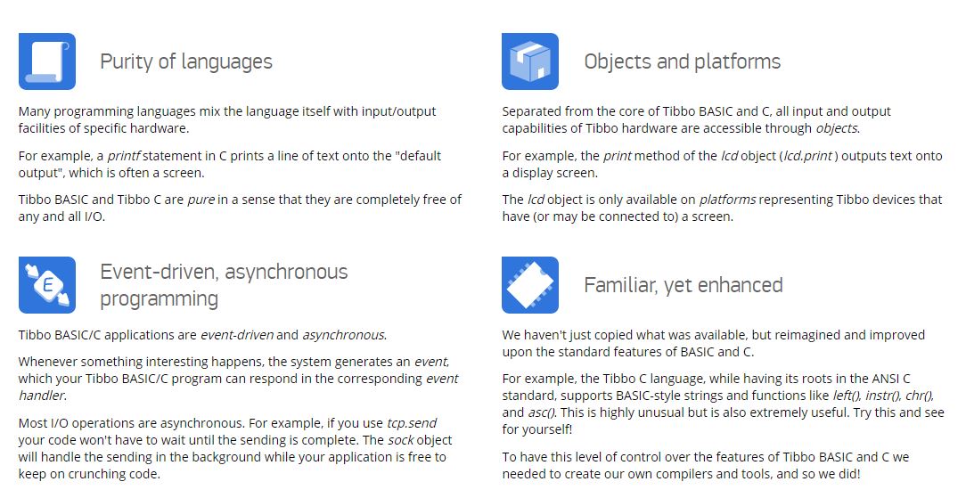 Separated from the core of Tibbo BASIC and C, all input and output capabilities of Tibbo hardware are accessible through objects.