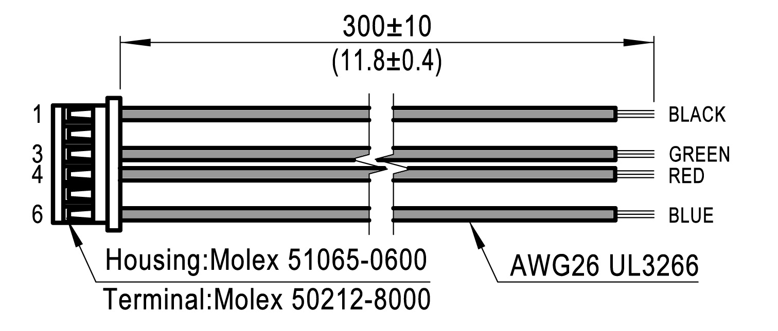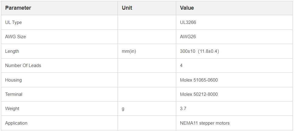 Cable for MS11HS Series 28mm/NEMA11 Bipolar Hybrid Stepper Motors with Molex connector.