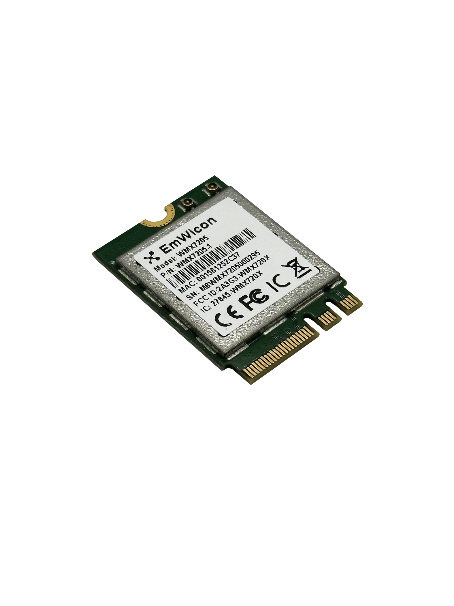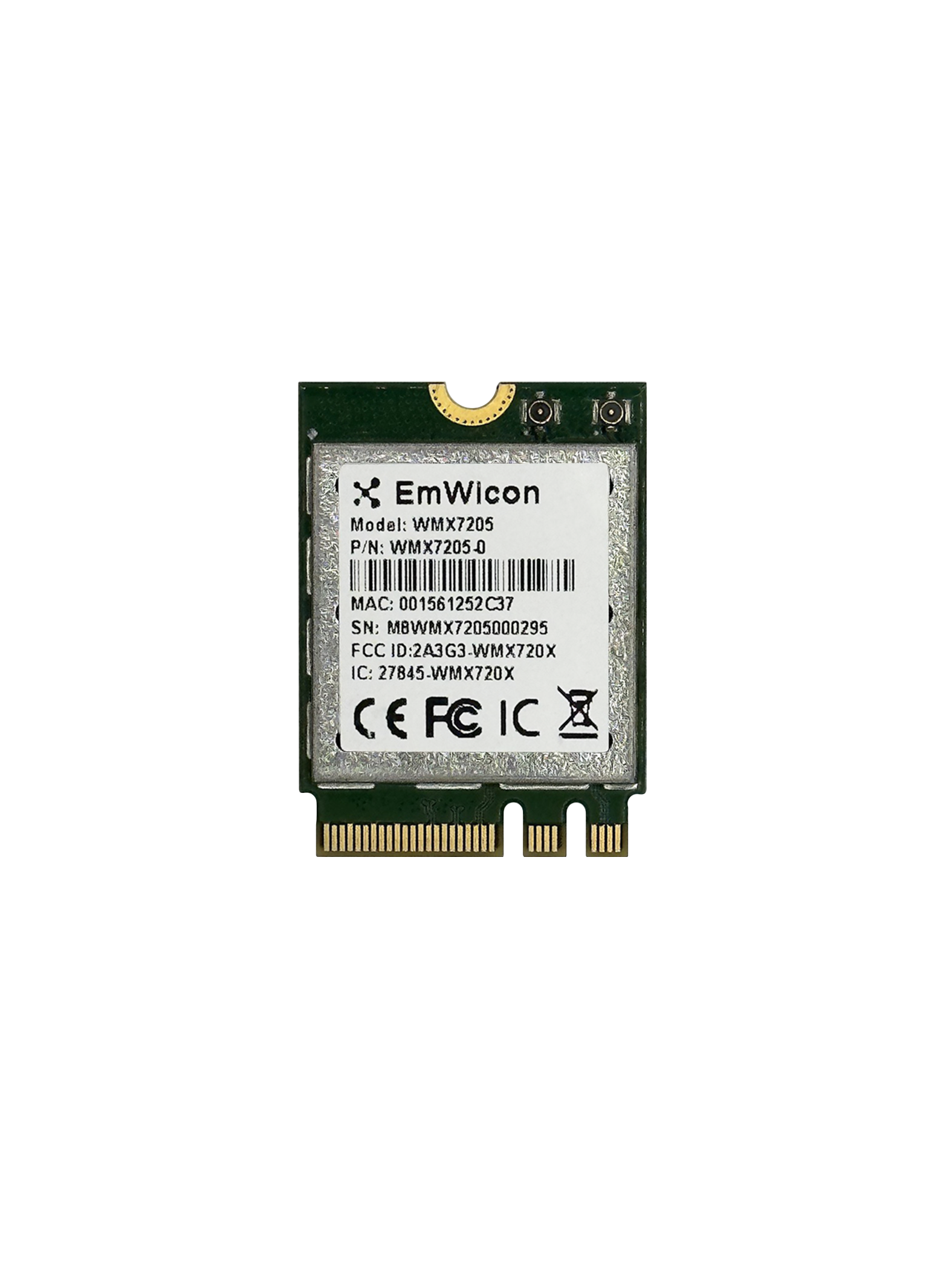 The Emwicon WMX7205 module is a highly integrated wireless local aera network (WLAN) M.2 module. The module based on Qualcomm WCN6856/QCA2066 an that is supporting 802.11ax Wi.Fi and Bluetooth (BT).